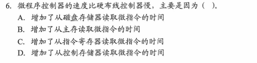 解:硬部件控制器的速度之所以快,是因为它的速度仅仅取决于电路的延迟,微程序控制器,而微程序控制器需要先从控制存储器里取出微指令,消耗了时间,选D