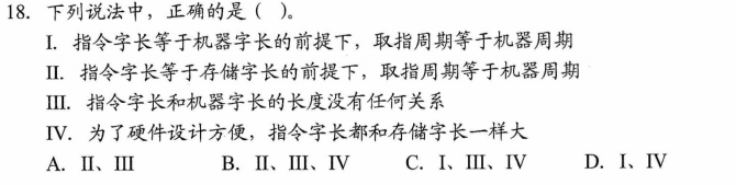 解:机器周期也称为CPU周期。在计算机中,为了便于管理,常把一条指令的执行过程划分为若干个阶段(如取指、译码、执行等),每一阶段完成一个基本操作。完成一个基本操作所需要的时间称为机器周期。一般情况下,一个机器周期由若干个时钟周期组成 ,如果指令字长等于存储字长,则取址周期等于机器周期,其中机器字长和指令字长没有任何联系,对于四,不一定都一样大,可以是存储字长的整数倍