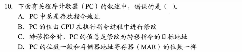 解:PC:程序计数器,存放的是下一条指令在主存中的地址;转移指令需要判断是否成功,成功后修改为转移指令的目标地址,选B