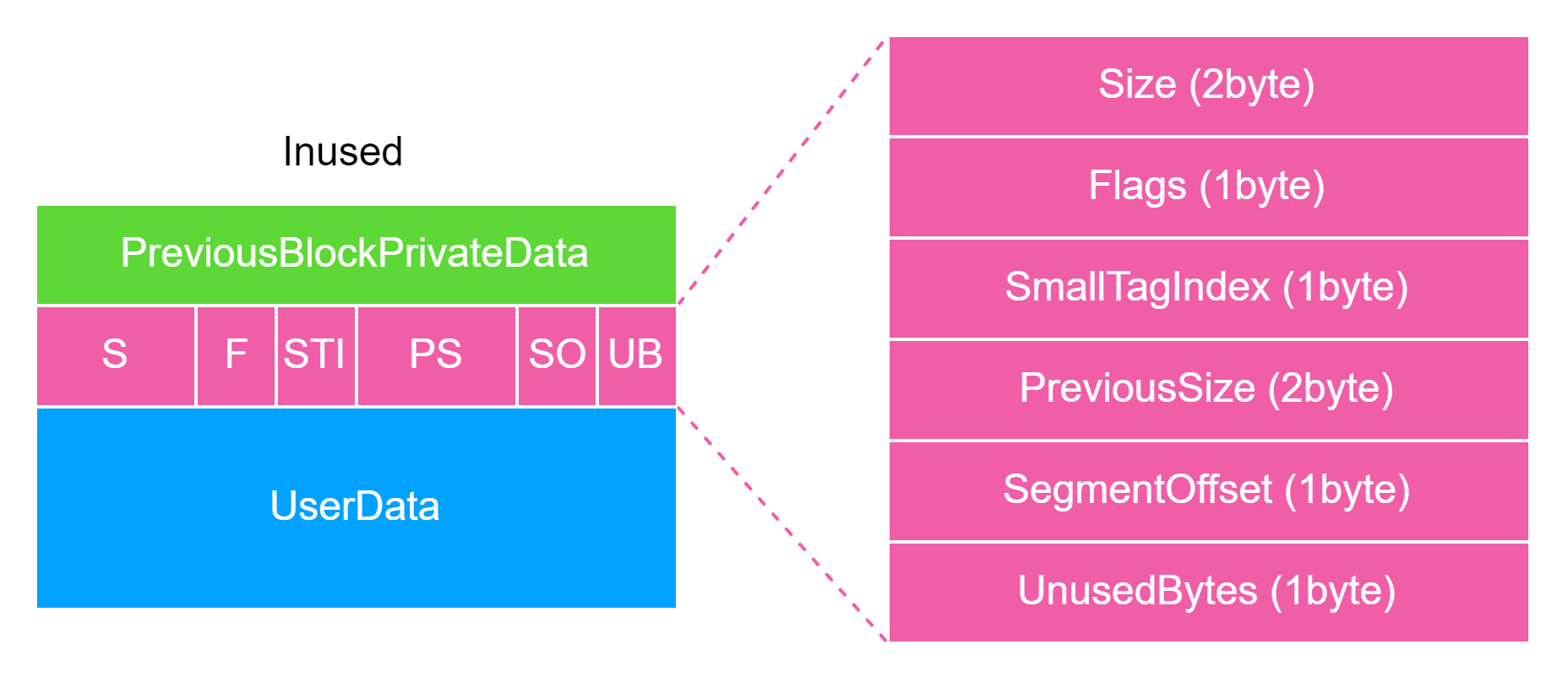 VirtualAddress:LargeBlock的地址,低 16 比特为UnusedBytes。AllocatedPages:分配的内存页数量。