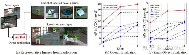 为此,我们提出了一种无需微调的小样本目标检测方法AirDet。如图一(b)所示,未经微调的AirDet甚至能取得比一些微调后的方法更好的结果。