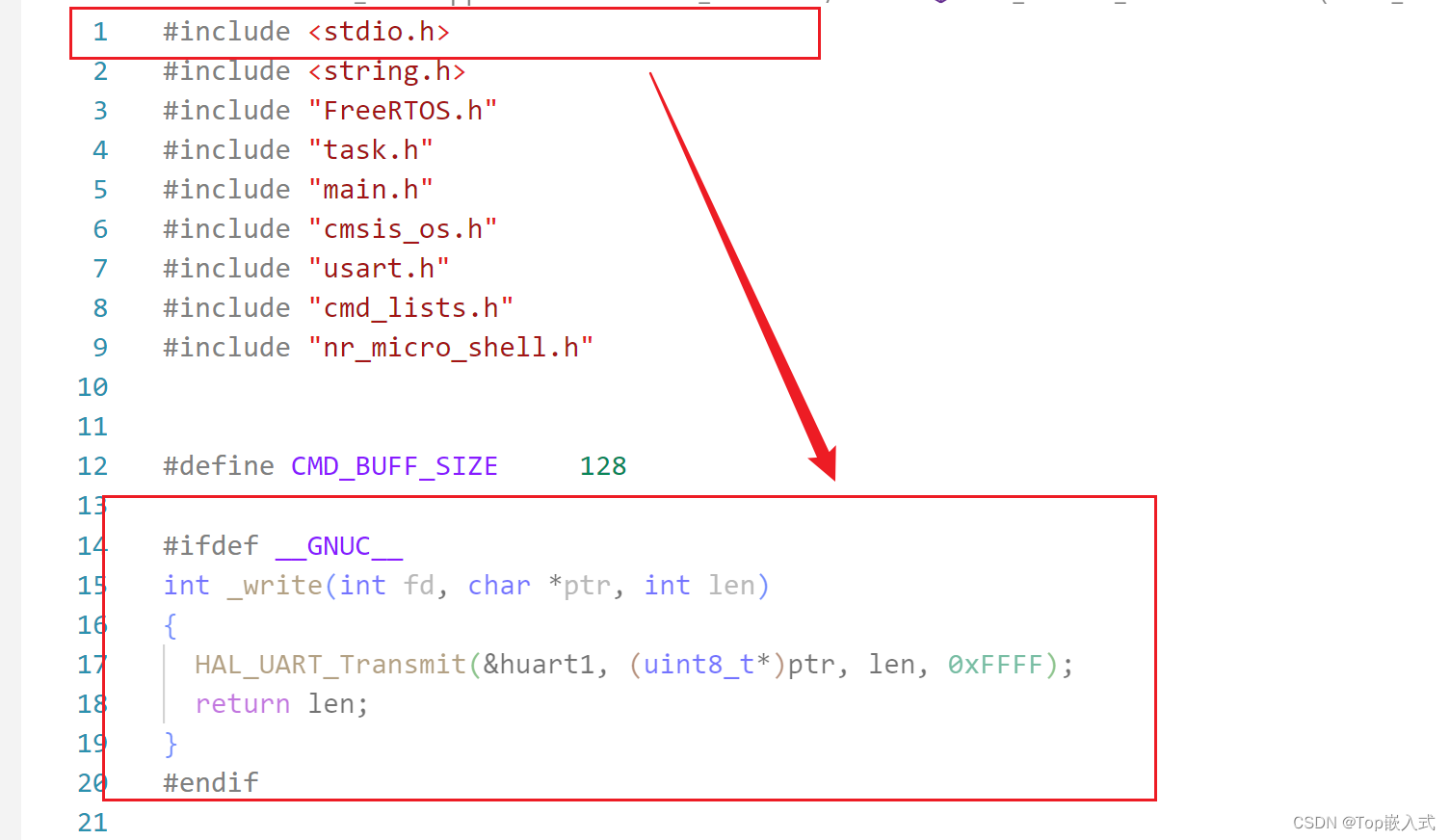 修改 STM32 CubeMX 的串口重映射,重映射到 printf,在 main 中加入如下代码:
