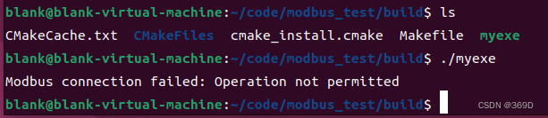 建立build文件夹,进行编译后运行结果如下:由于没有modbus连接,所以输出的就是预设的错误信息。