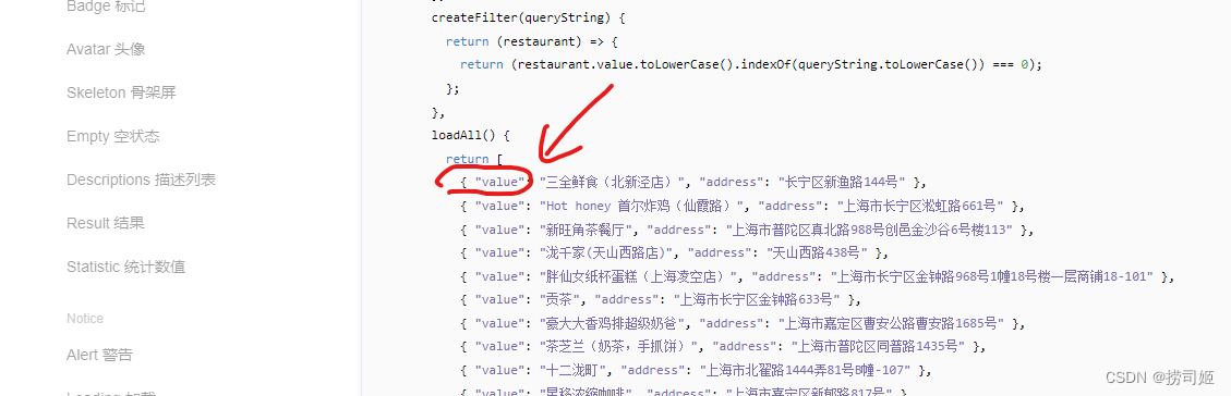 value-key的属性,用于指定建议对象中作为值的属性名。默认情况下,它是value(也就是官方案例中的loadAll中的value)。确保你在el-autocomplete组件上正确地设置了value-key属性,以匹配你的数据对象中用作值的属性名。如下图如果返回的数据中没有名为value的属性,则需要在组件中绑定对应的属性。
