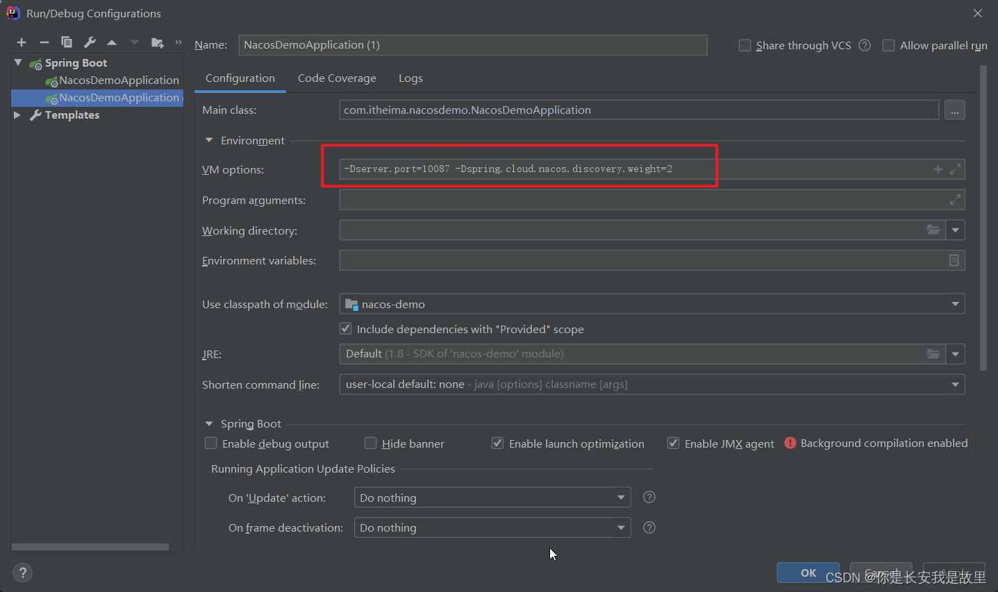 -Dserver.port=10087 -Dspring.cloud.nacos.discovery.weight=2