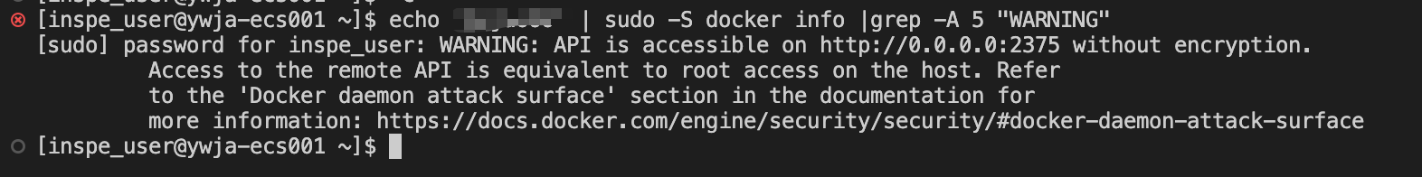 exec(before + 'docker info |grep -A 5 "WARNING"').then((content) => {