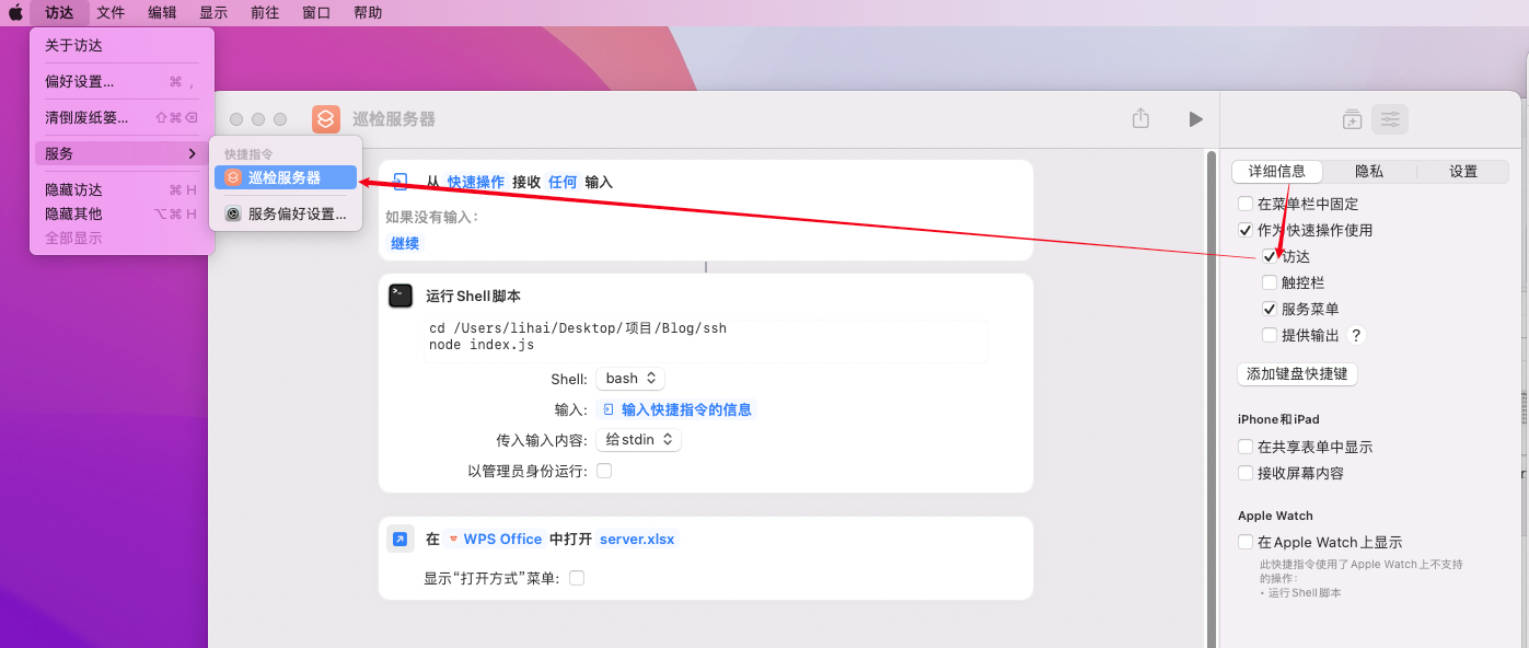 运行macOS笔记本创建好的快捷指令,它会自动巡检服务器,并且巡检完成后直接打开巡检结果表格。当然没有macOS依然可以,但就是没有快捷指令这步,需要自己执行程序。