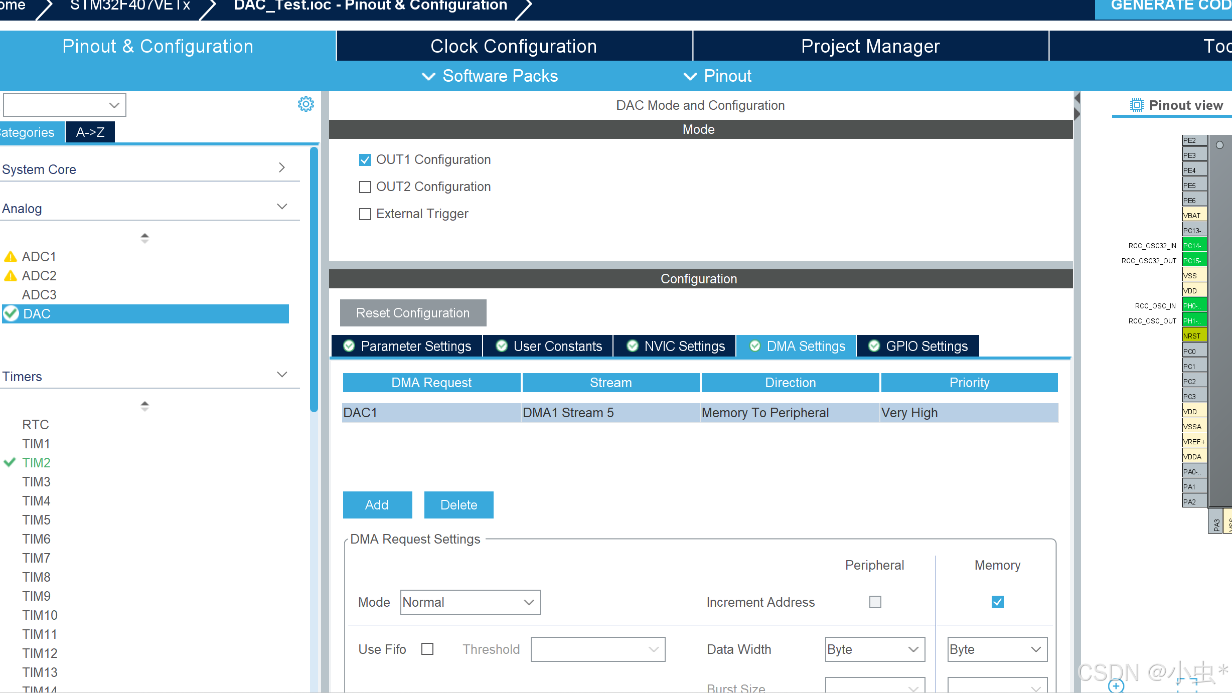 关于使用stm32f407使用DAC直接输出音频的.c代码