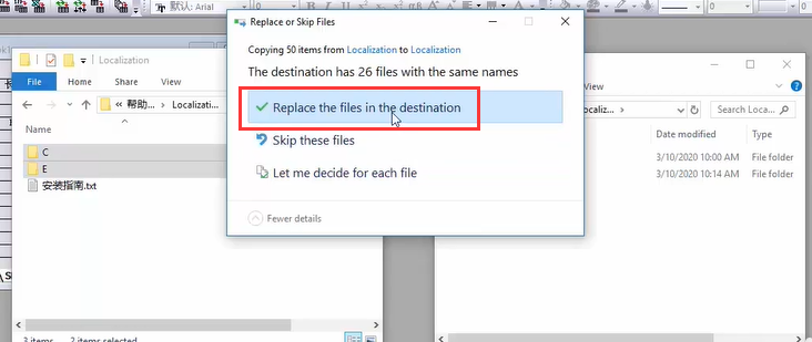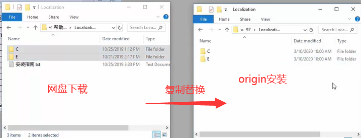 13.打开"localization"文件夹(Origin安装的),将网盘解压的“C”和“E”文件夹复制到Origin安装的"localization"文件夹中,替换原有文件