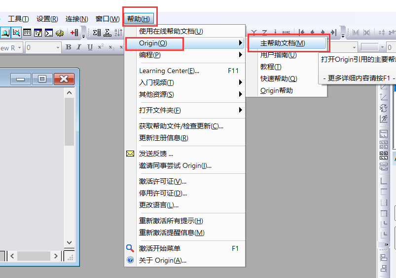 15.点击“帮助-Origin-主帮助文档”,打开的就是本地帮助文档