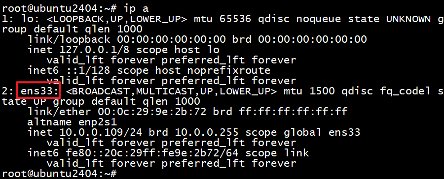 en表示以太网,s表示slot (插槽),X为插槽号,s33表示 Slot 33 - 含义:位于 PCI-E 插槽的网卡。示例:
