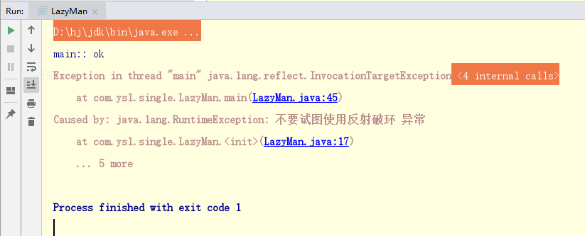 throw new RuntimeException("不要试图使用反射破环 异常");