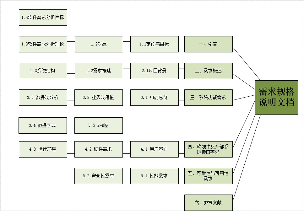 引言这次把送大家的话写在最前面:你所见到的惊艳,都曾经历过平庸的历练。耗时一周,完成了需求工程。概论《需求规格说明文档》是整个需求工程中最后生成的文档,编写本文档,旨在将用户需求高度总结,明确表示系统功能需求,便于用户理解和修改,便于软件开发者理解和实现,也便于软件测试者阅读和理解。需求规格说明文档1. 引言1.1目的1.2范围1.3定义、首字母缩写和缩略词1.4参考文献1.5文档组织2. 总体描述2.1产品前景2.2产品功能2.3用户特性2.4约束2.5假设和依赖3.