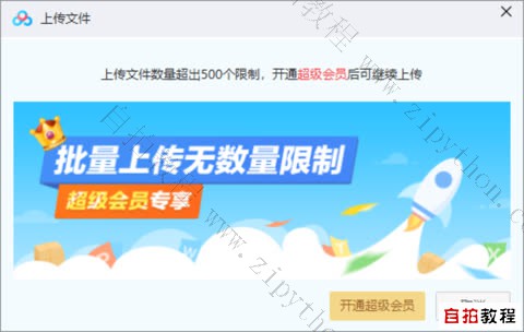 百度网盘非会员大量上传文件,会弹出:“上传文件数量超出500个限制,开通超级会员后可继续上传”,