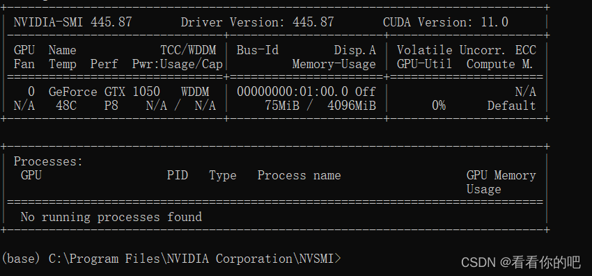 接下来就是选择适合自己电脑的pytorch torchvision torchaudio cudatoolkit的版本,这个特别重要,因为这个导致重新下载很多回。查看自己显卡的cuda,我的是11.0,向下兼容就行