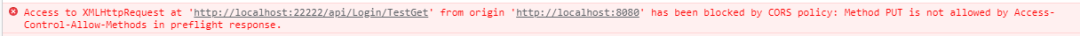 Access to XMLHttpRequest at 'http://localhost:22222/api/Login/TestGet' from origin 'http://localhost:8080' has been blocked by CORS policy: Method PUT is not allowed by Access-Control-Allow-Methods in preflight response.