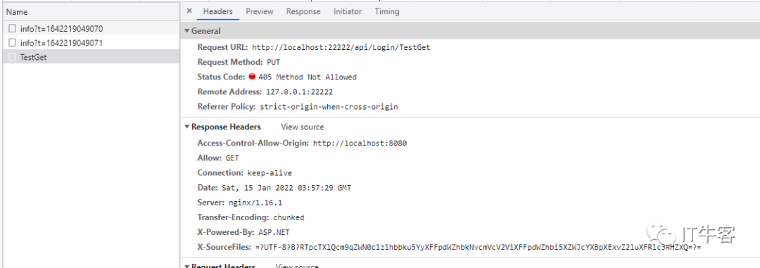 都加上后,问题就解决了,这里报405是我服务端这个接口只开放了GET,没有开放PUT,而此刻我将此接口用PUT方法去请求,所以接口会返回这个状态码。