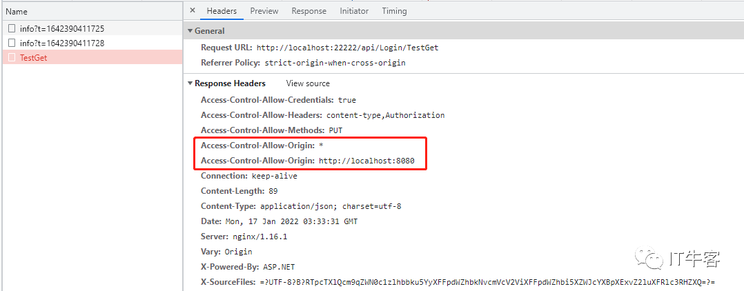 Access to XMLHttpRequest at 'http://localhost:22222/api/Login/TestGet' from origin 'http://localhost:8080' has been blocked by CORS policy: The 'Access-Control-Allow-Origin' header contains multiple values '*, http://localhost:8080', but only one is allowed.