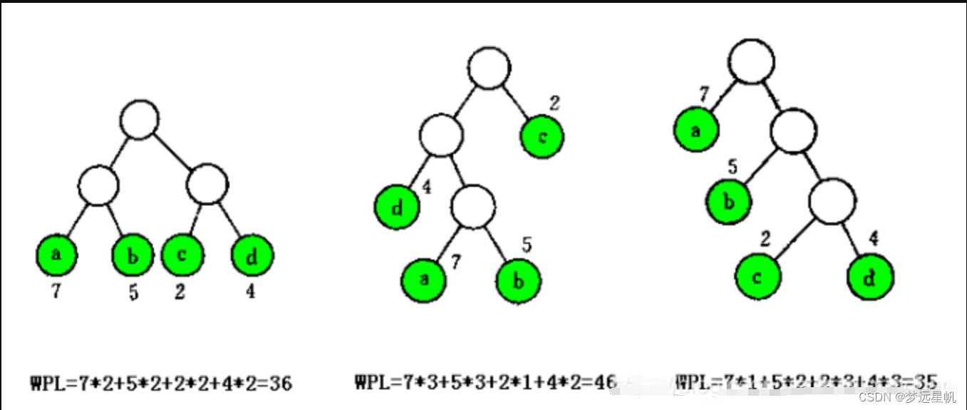 树的带权路径长度:树中所有叶子结点的带权路径长度之和,记作: