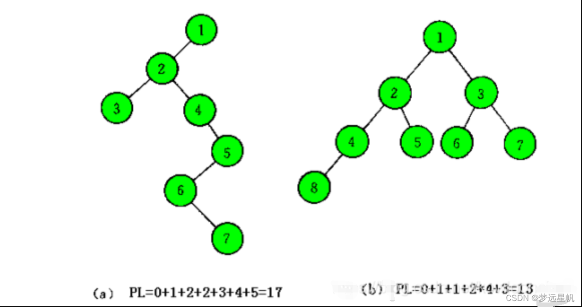 树的路径长度:从树的根到树中每一个结点的路径长度之和。