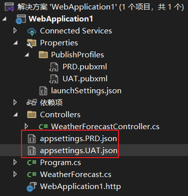 用哪个配置文件(UAT/PRD)publish,最终生成的appsettings.json就是什么里面的内容(appsettings.UAT.json/appsettings.PRD.json)