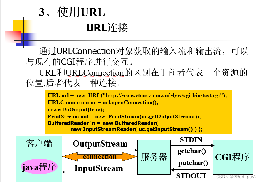通过URL类提供的方法openConnection(),就可以获得一个URL连接(URLConnection)对象。