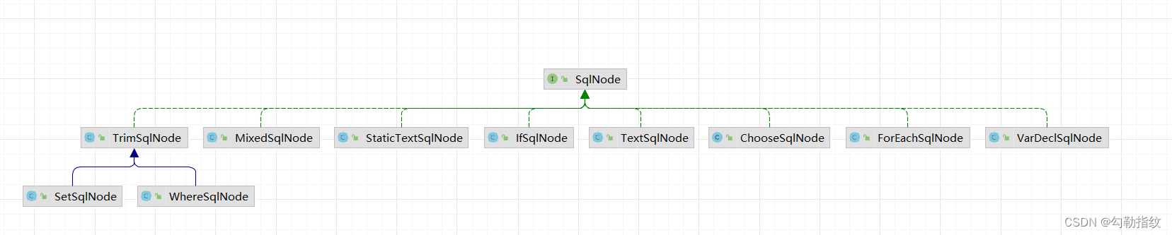 SqlNode的数据结构很像一个树结构,MixedSqlNode节点为树枝,其余类型为树叶。其结构大致如下: