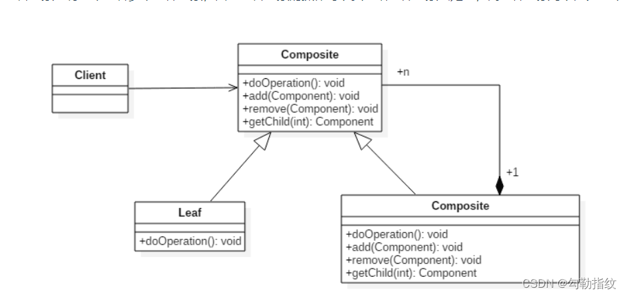 组合对象拥有一个或者多个组件对象,因此组合对象的操作可以委托给组件对象去处理,而组件对象可以是另一个组合对象或者叶子对象。