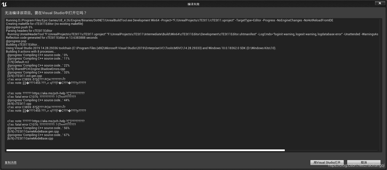 直接下载安装ue4,ue4版本 4.26.1创建c++空项目到67%,编译失败