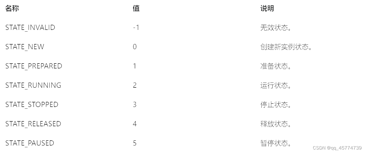使用on('stateChange')方法可以监听AudioCapturer的状态变化,每个状态对应值与说明见