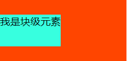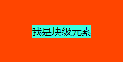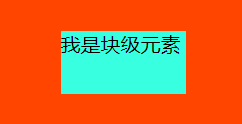 <style> .box{ display: flex; justify-content: center; align-items: center; width: 200px; height: 100px; background-color: orangered; } .id{ background-color: #37ffdf; } </style> <div class="box"> <div class="id">我是块级元素</div> </div>