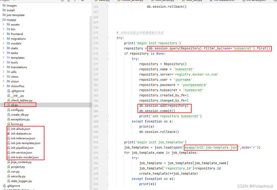 如图所示,在cli.py中初始化写入数据库,对数据的操作通过db.session来进行