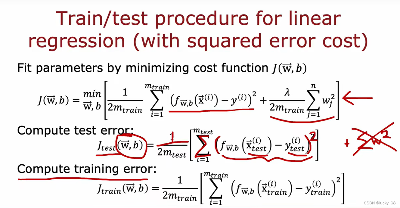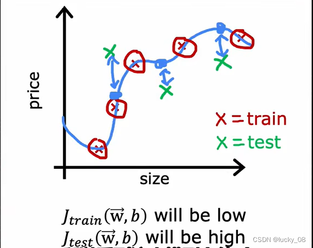 训练集的平均误差是0或接近0,所以训练集的J将会很接近0;测试集里可能有没训练过的示例,那么测试集的J会很高。