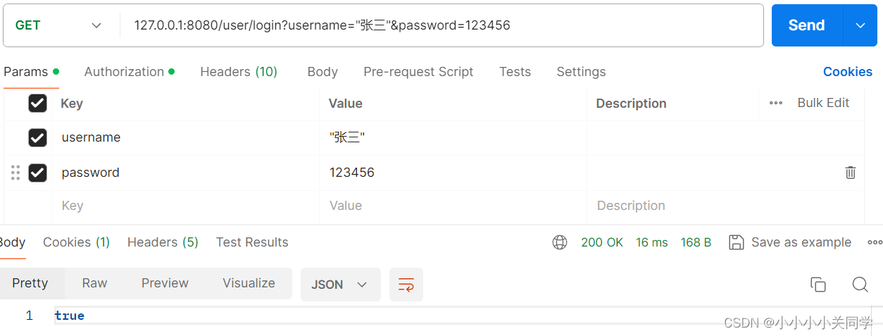 再看一下执行结果:此时后端返回的就是false,这就是他们的第一个和第二个区别的展示。