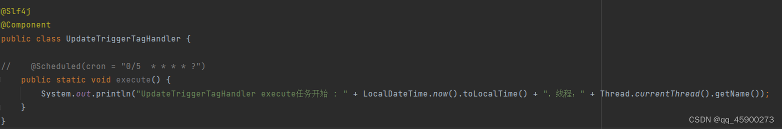 1、不使用@Scheduled()注解,同样自定义类,自定义方法(需要加上static,不然会报错):