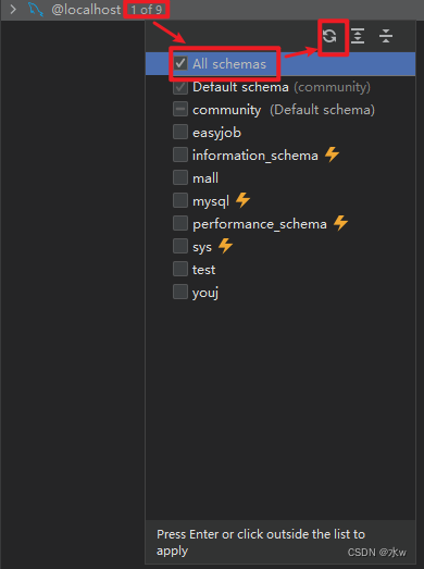 (4)连接成功之后只显示默认架构(也就是数据库),可以切换要显示的数据库。