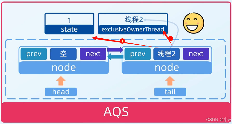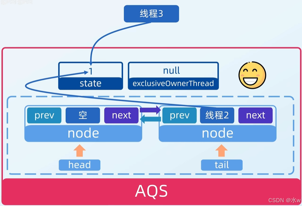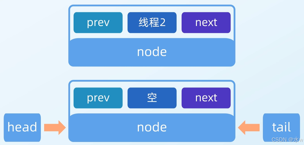 接着继续执行,把线程2节点挂到头结点的后面,尾节点指向线程2节点。