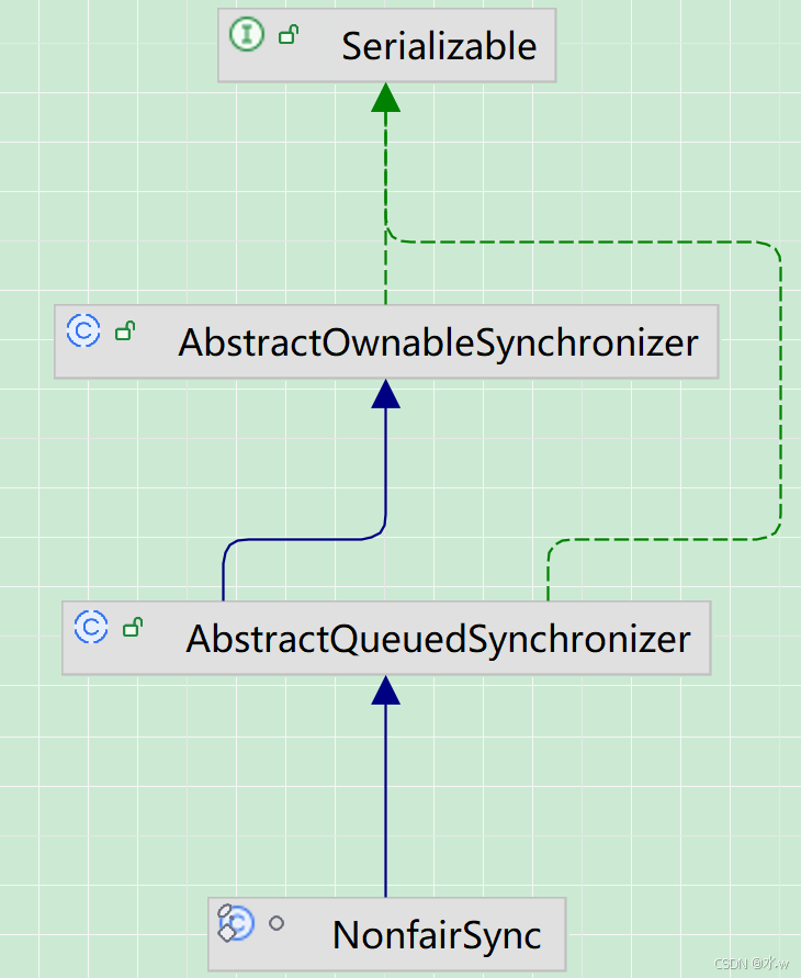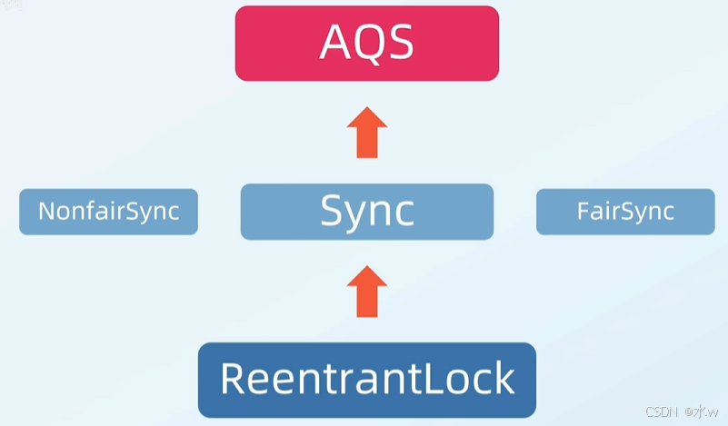 Sync 继承 AQS,Sync 有两个实现类,分别是FairSync(公平锁)、NonfairySync(非公平锁),而ReentrantLock的加锁和解锁操作就是在这两个类基础上进行的,这也说明了ReentrantLock 里面最终维护的其实就是一个AQS对象。