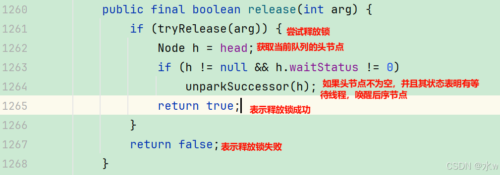 当线程A释放完锁之后,程序会调用AbstractQueuedSynchronizer.release()方法的,代码如下,