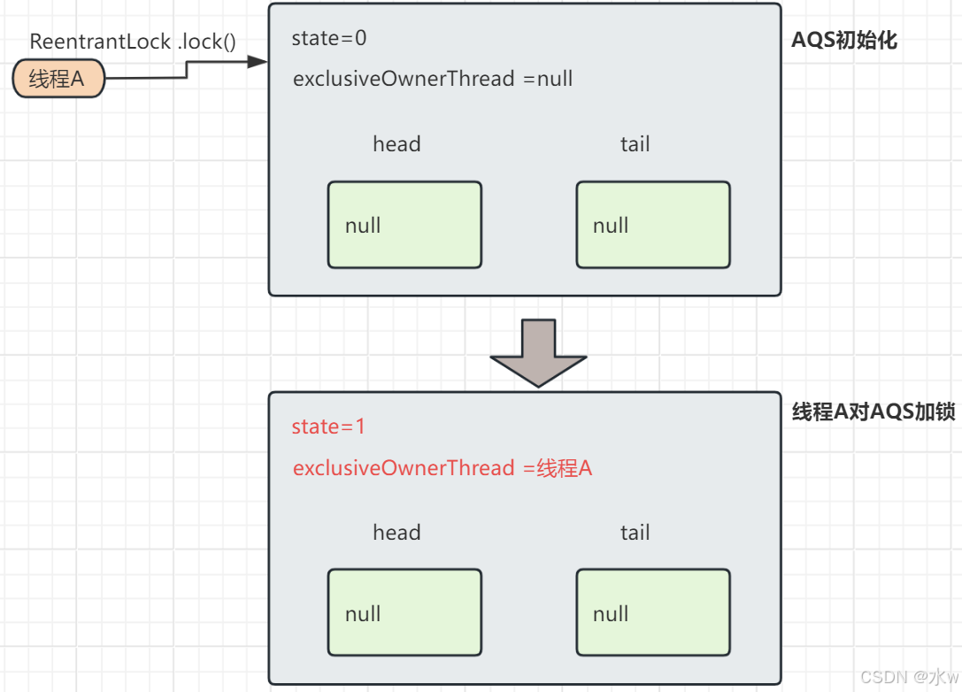 state在不同子类中含义不同,ReentrantLock中0表示未加锁,1表示加锁,大于1表示锁重入。
