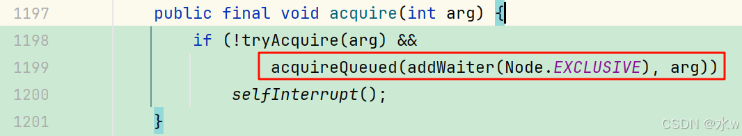 2)addWwaiter()成功后调用 acquireQueued()方法