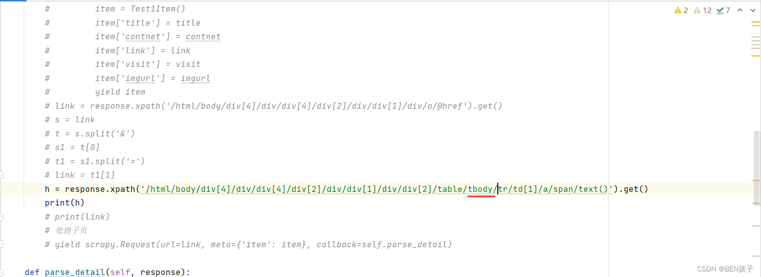 scrapy用xpath爬取不到tbody的问题这是因为tbody是Firefox和Chrome等浏览器自动添加的标记。但是当使用Scrapy进行抓取时,tbody不在responseHTML中。所以我们只要把xpath里的tbody删除即可正常爬取的数据顺便写点scrapy的经验吧, 进入循环的xpath语句记得前面没有/这些东西, 直接按节点走,例如:第一个for循环是对末尾的div数组进行遍历, 然后第二层循环是对div数组里的div[2]/div/div[]数组进行遍历, 注意xpat