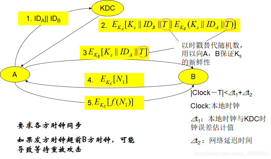 E K B [ I D A ∣ ∣ K S ∣ ∣ T B ] c a n b e a u t h e n t i c a t e d a s A E_{KB}[ID_A||K_S||T_B]\ can\ be\ authenticated\ as\ A EKB[IDA∣∣KS∣∣TB] can be authenticated as A