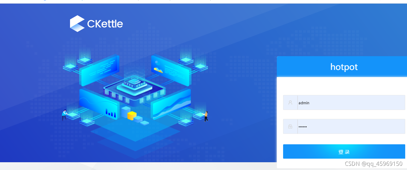 hotpot本地部署-CKettle 1、下载CKettle安装包下载地址:CKettle - 源于开源 强于开源下载完成后,解压至本地,即可使用,CKettle和kettle没有多大区别,只是CKettle多了个web管理工具hotpot,所以对hotpot没有使用要求的,建议还是用kettle,毕竟kettle更稳定。2、开启hotpot,单击Hotpot.bat如果出现闪退,则到本地用户目录下 ,删除./kettle文件夹下带lock的文件,重新启动即可。出现success字样,即代表启动成功...