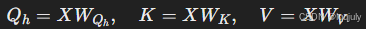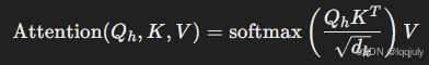 其中,h 表示第 h个注意力头。注意这里每个头都有自己的 Qh,但所有头共享同一组 K 和 V。