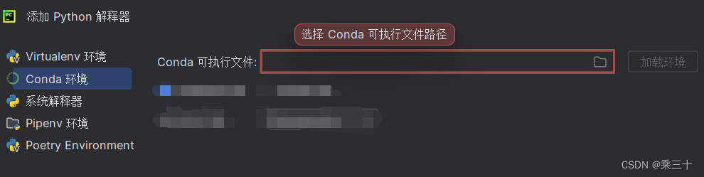 在pycharm里添加conda环境时,一直找不到可执行conda文件。