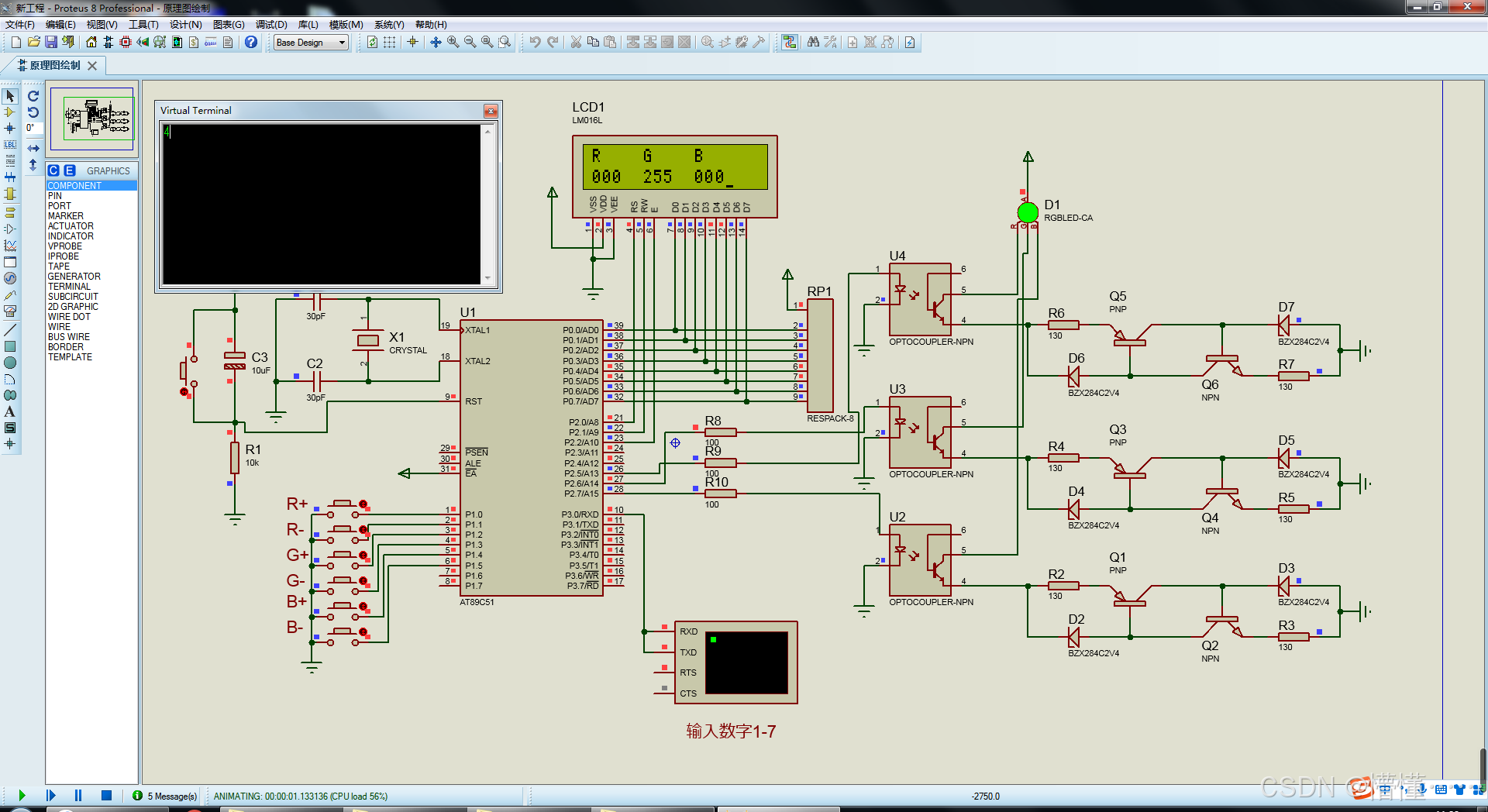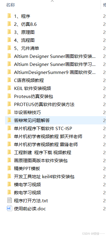毕设帮助、开题指导、技术解答(有偿)见文末。 目录 一、设计功能 二、proteus仿真 三、原理图 四、程序源码 五、资料包括 一、设计功能 三基色灯控制: 1、按键或串口控制RGB的值,来调整颜色 2、用LCD1602显示RGB值 3、使用PWM输出RGB值 说明: 仿真偶尔会崩溃,重重新仿真即可 仿真速度很慢,很卡。每次按按钮以后大概要等10s左右时间。 二、proteus仿真 三、原理图 四、程序源码 五、资料包括 需要完整的资料可以点击下面的名片,找我要资源压缩包的百度网盘下载地址及提取码。