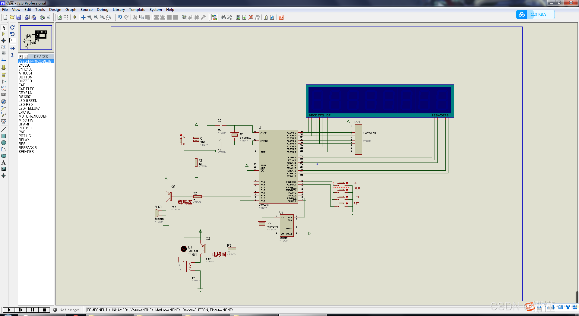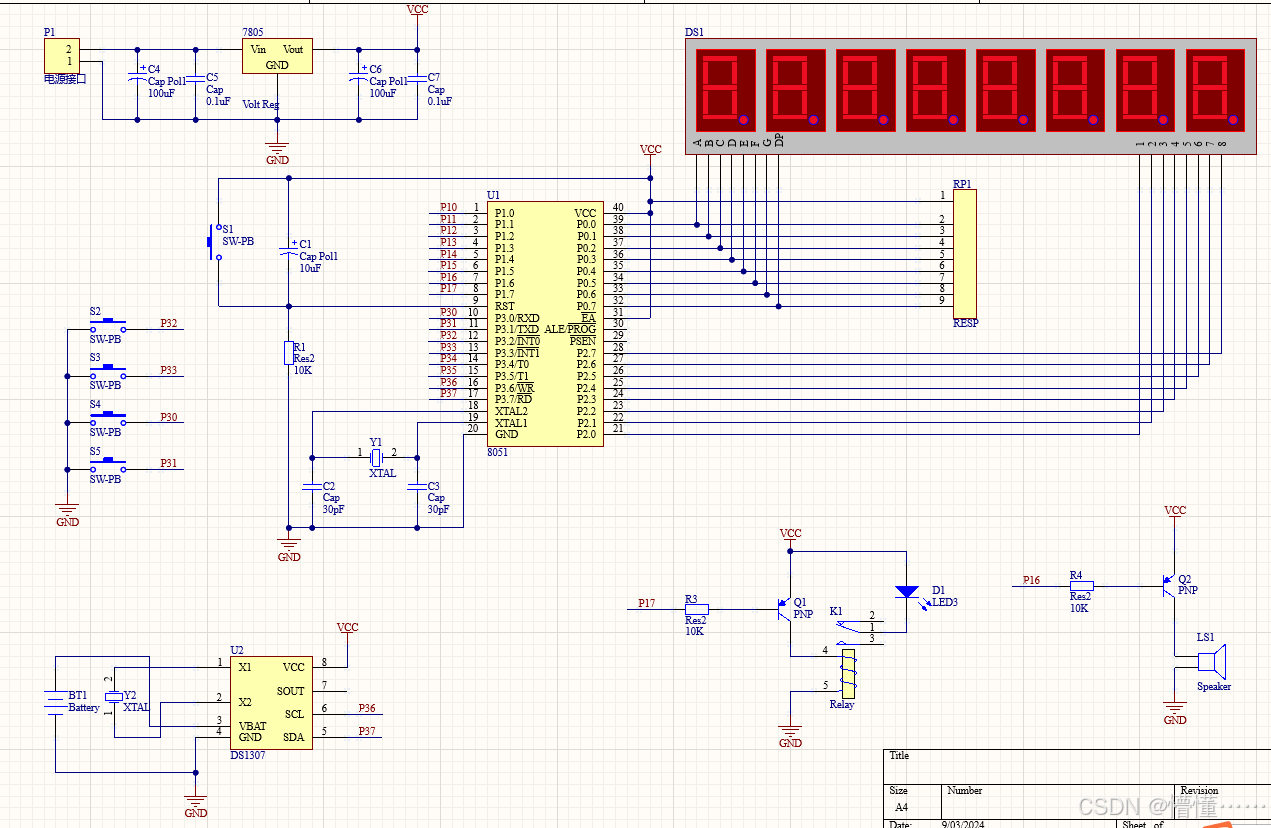 鸣器为声音信号,按在P1.6脚小功率电磁往电器打开和关闭外部了2C-2F电源来执行此功前,电器触点通过端口P1.7打开和关闭