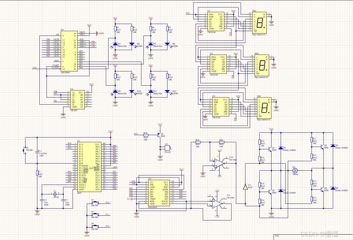 当水位到达某一光敏三极管的位置时,其输出端口就向单片机输出高电平;