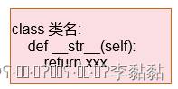 注意:(1)如果没有定义__str__()方法,默认打印的是,对象的引用地址,也就是对象变量在内存中存储空间的地址。(2)如果定义__str__()方法,打印的是 方法的返回值。